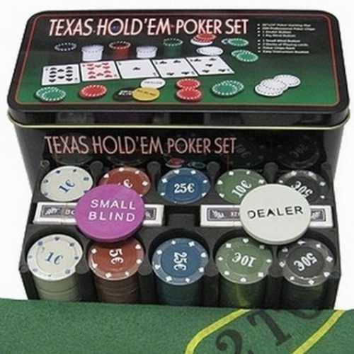 Комплектация: фишки с номиналом 200 шт, 2 колоды карт, сукно.